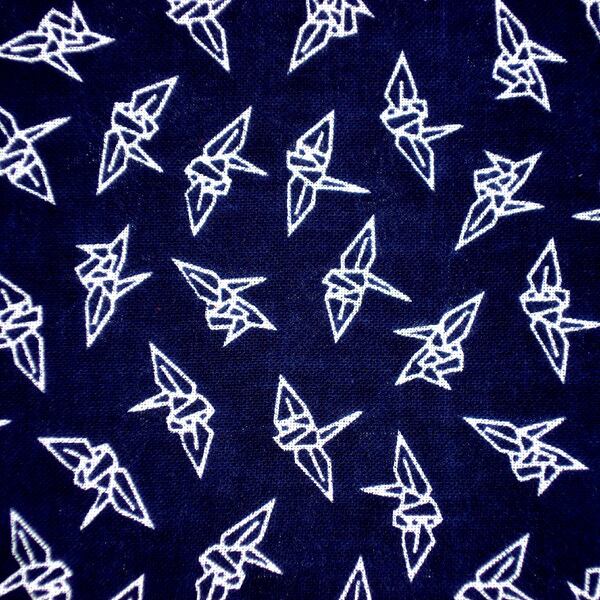 折り紙の鶴をモチーフにした柄です。鶴は長寿や幸福、平和の象徴とされ、古くから縁起の良いモチーフとして親しまれてきました。