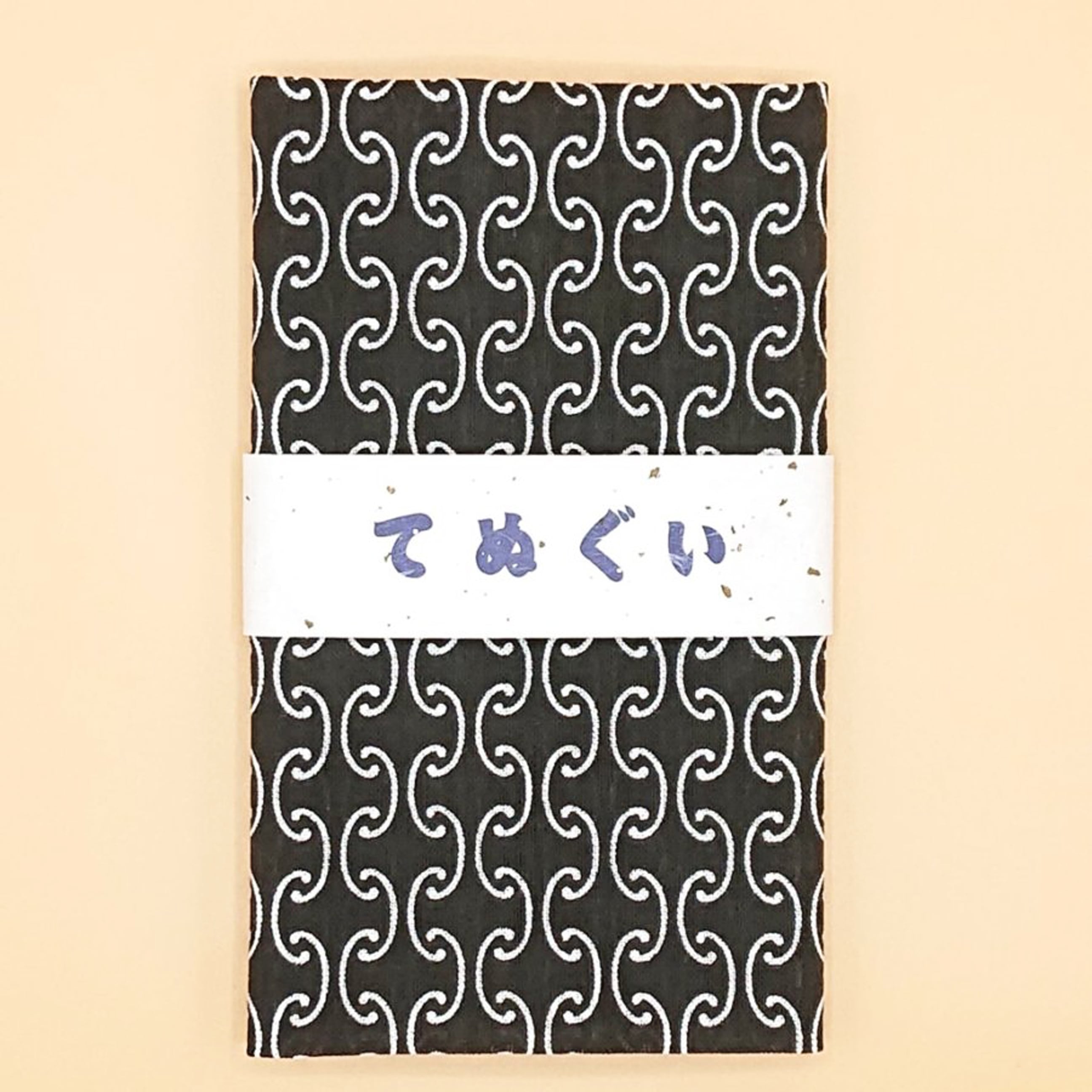 輪と「和」をかけ、平和が長く続くことや、取っ手を引く動作の「手あまた」の意味を持つ縁起の良い手ぬぐいです。