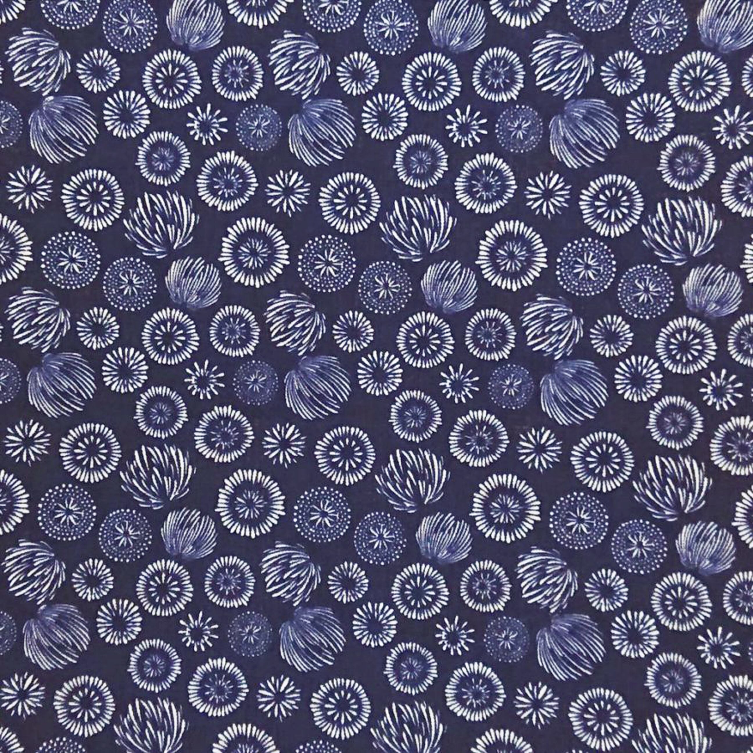 地色は紺色系で、濃藍色の深い色合いが夜空を思わせるデザインです。