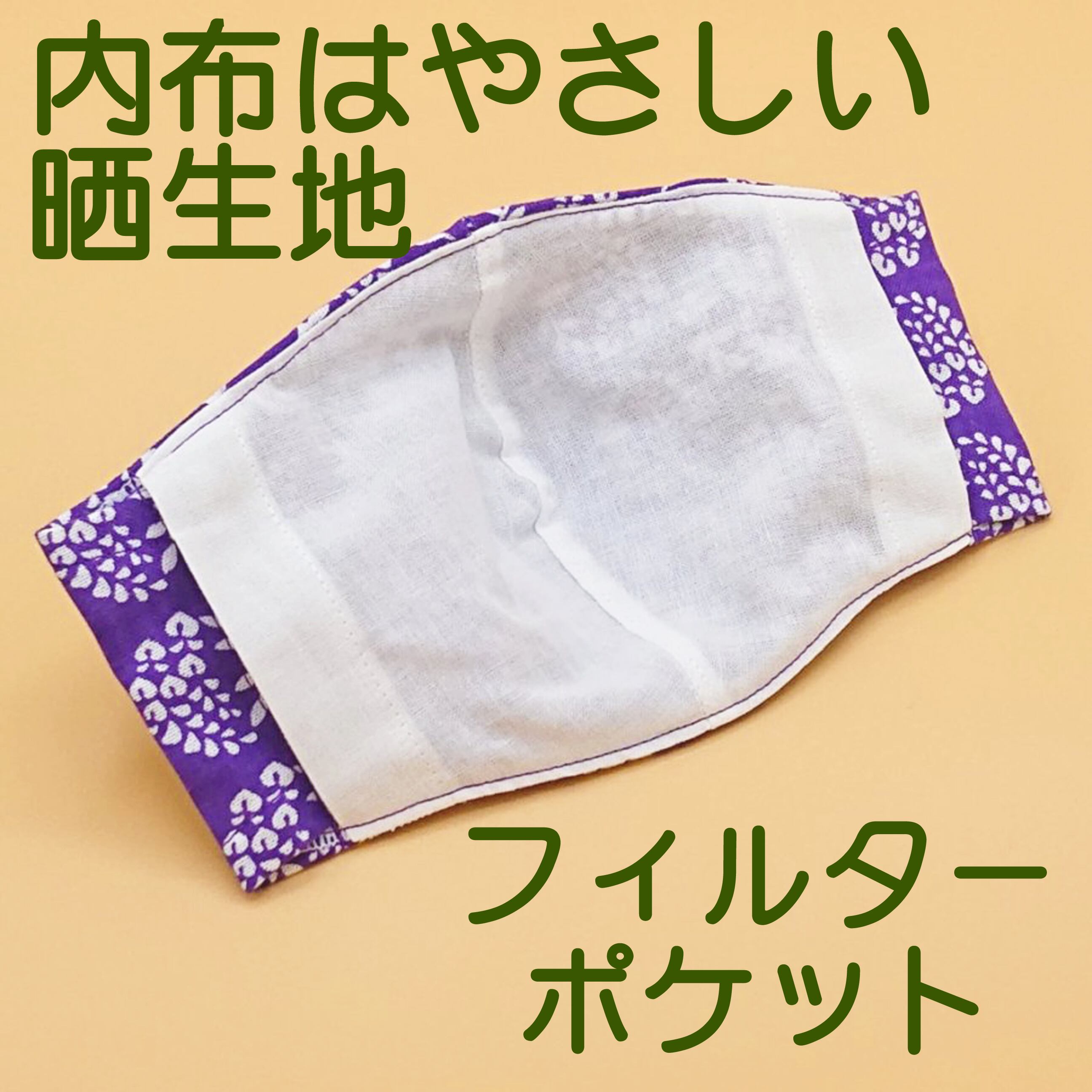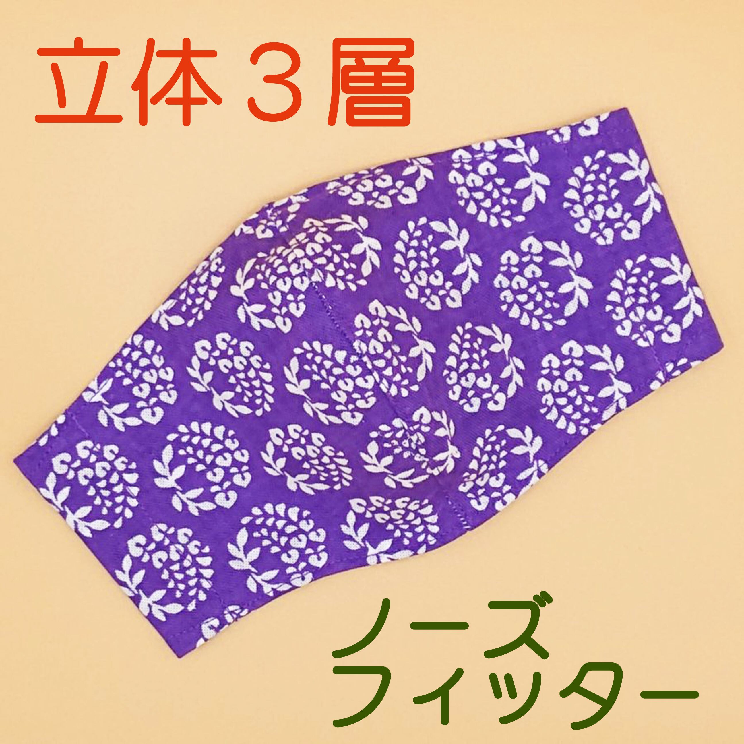 立体マスク ★藤 紫★ 手ぬぐいマスク ●立体3層●ノーズフィッター●ポケット