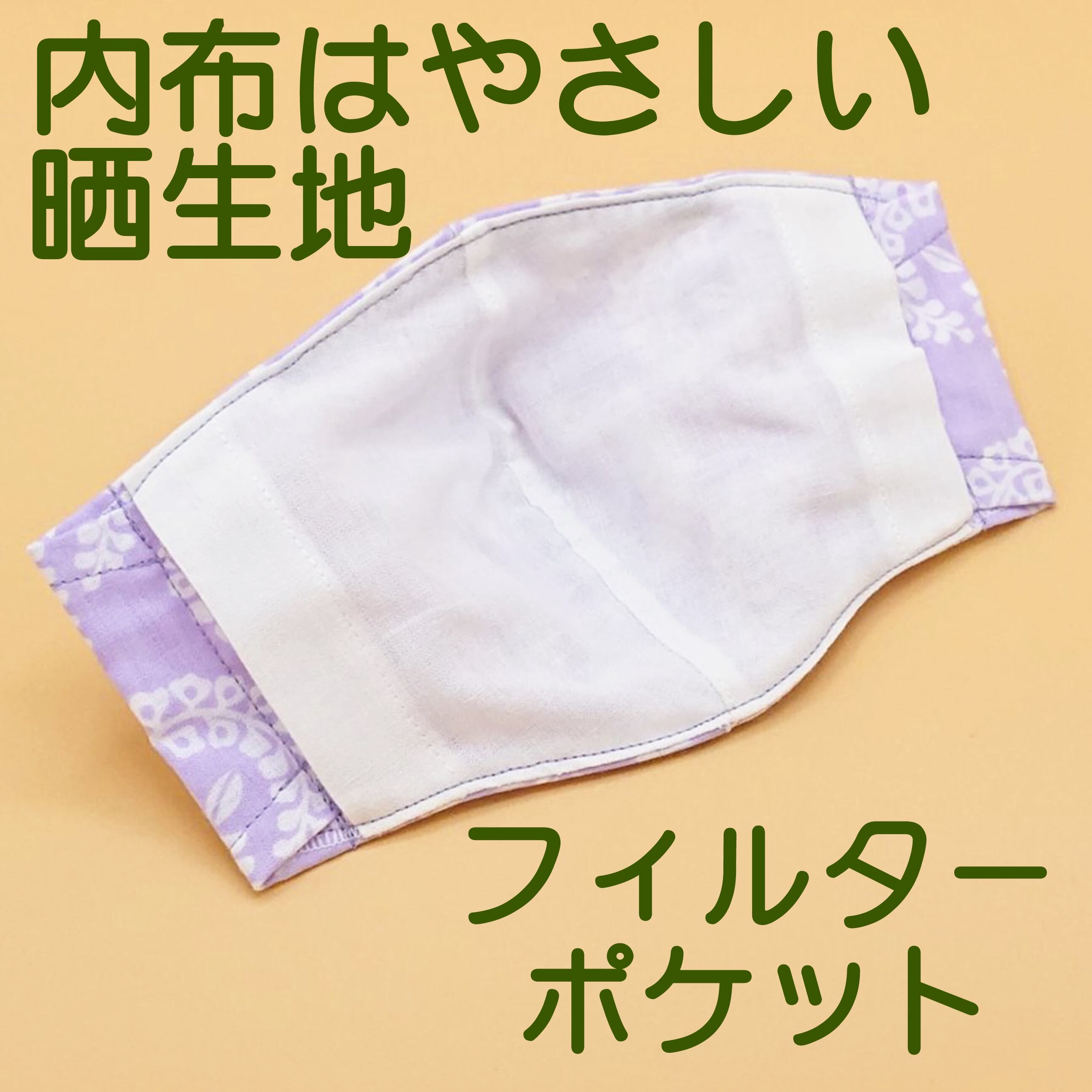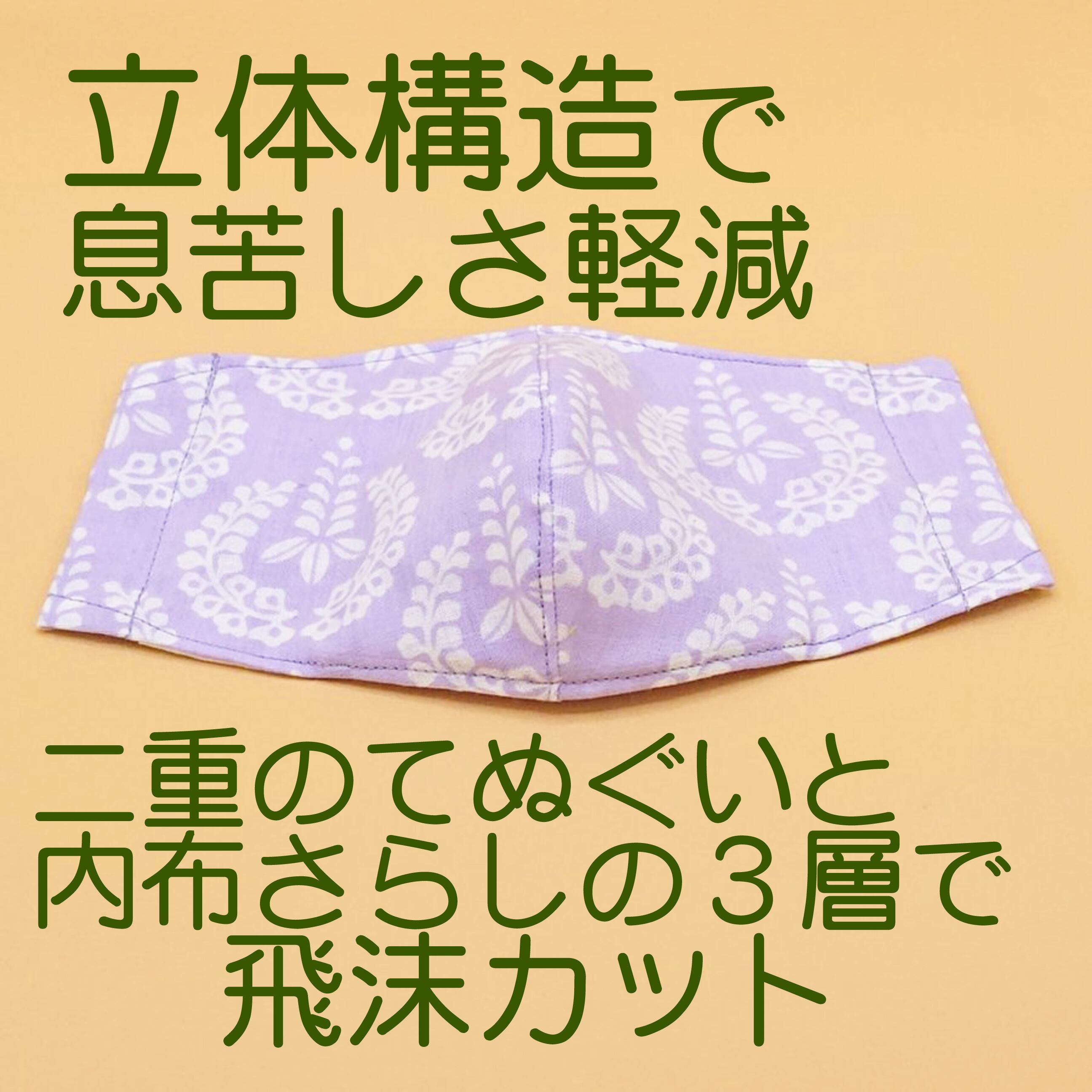 立体マスク ★大藤 薄紫★ 手ぬぐいマスク ●立体3層●ノーズフィッター●ポケット