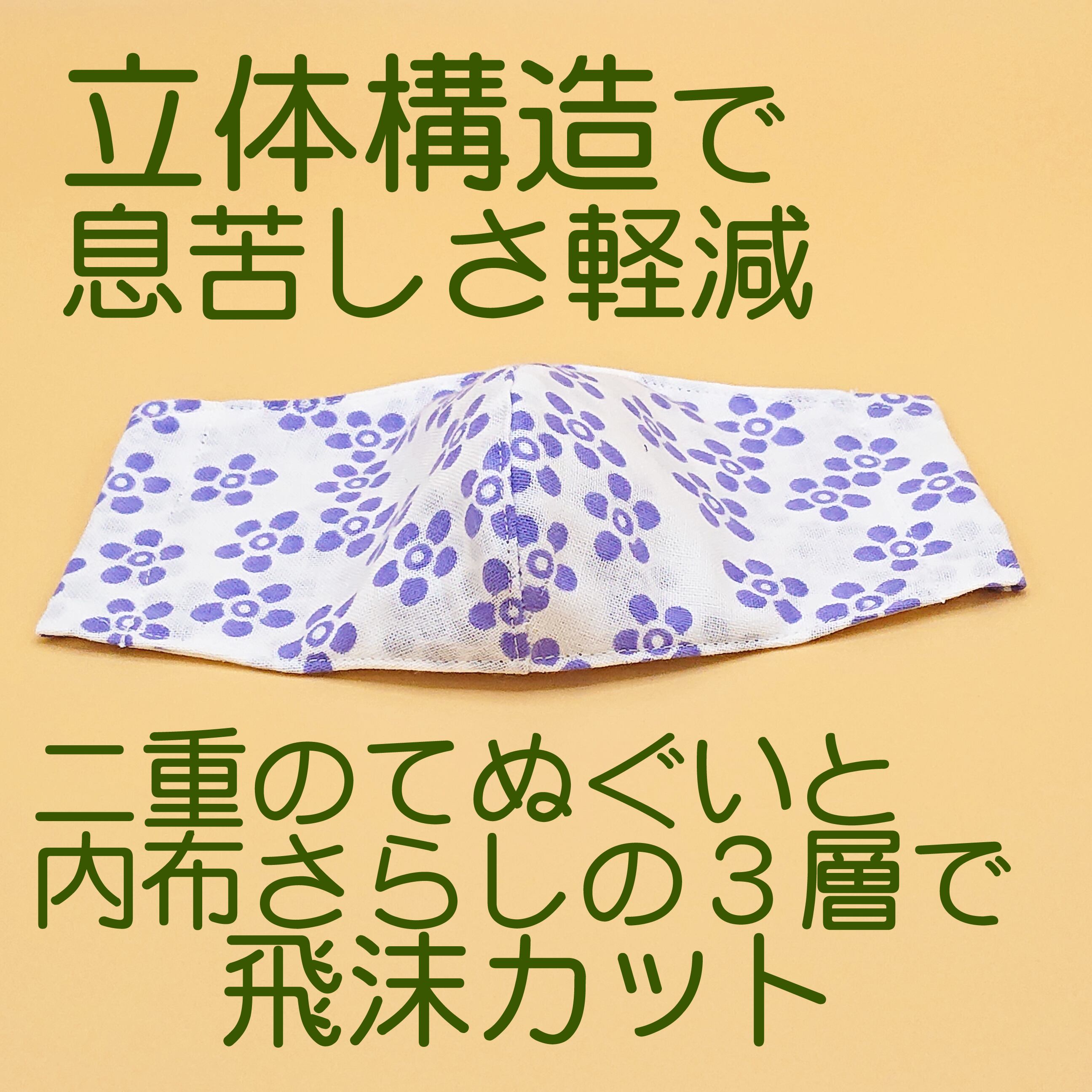 立体マスク ★梅 パープル★ 手ぬぐいマスク ●立体3層●ノーズフィッター●ポケット