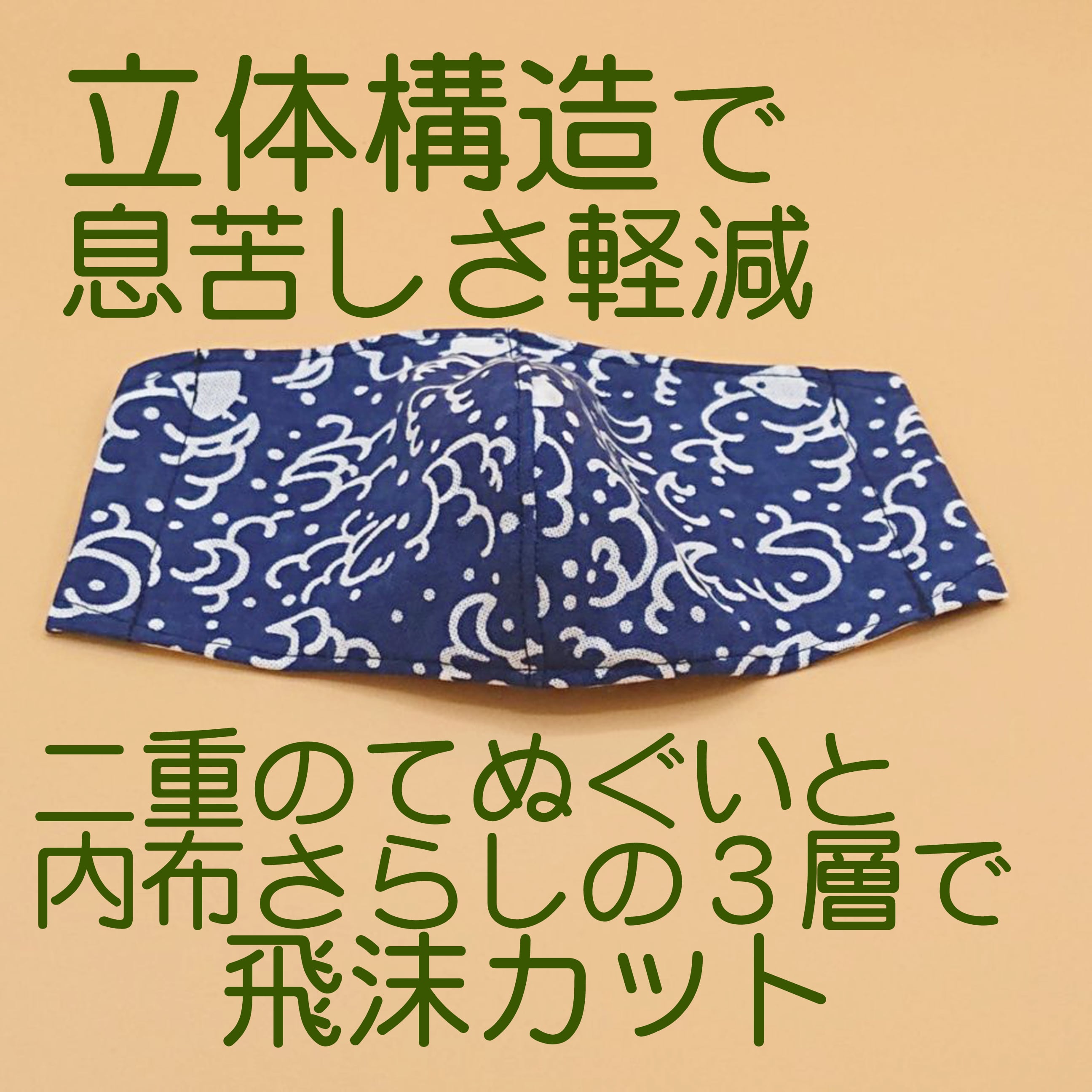 立体マスク ★浜千鳥★ 手ぬぐいマスク ●立体3層●ノーズフィッター●ポケット