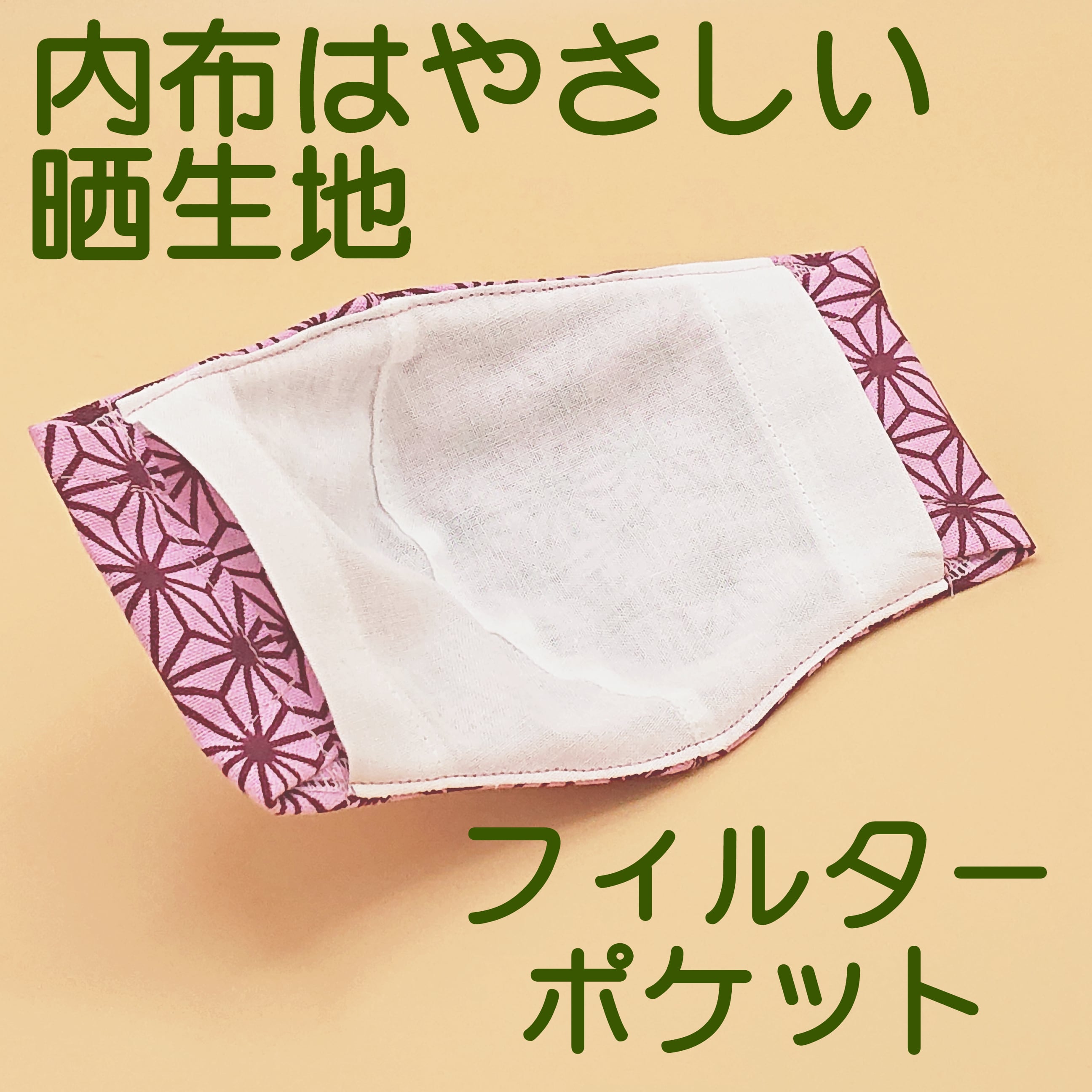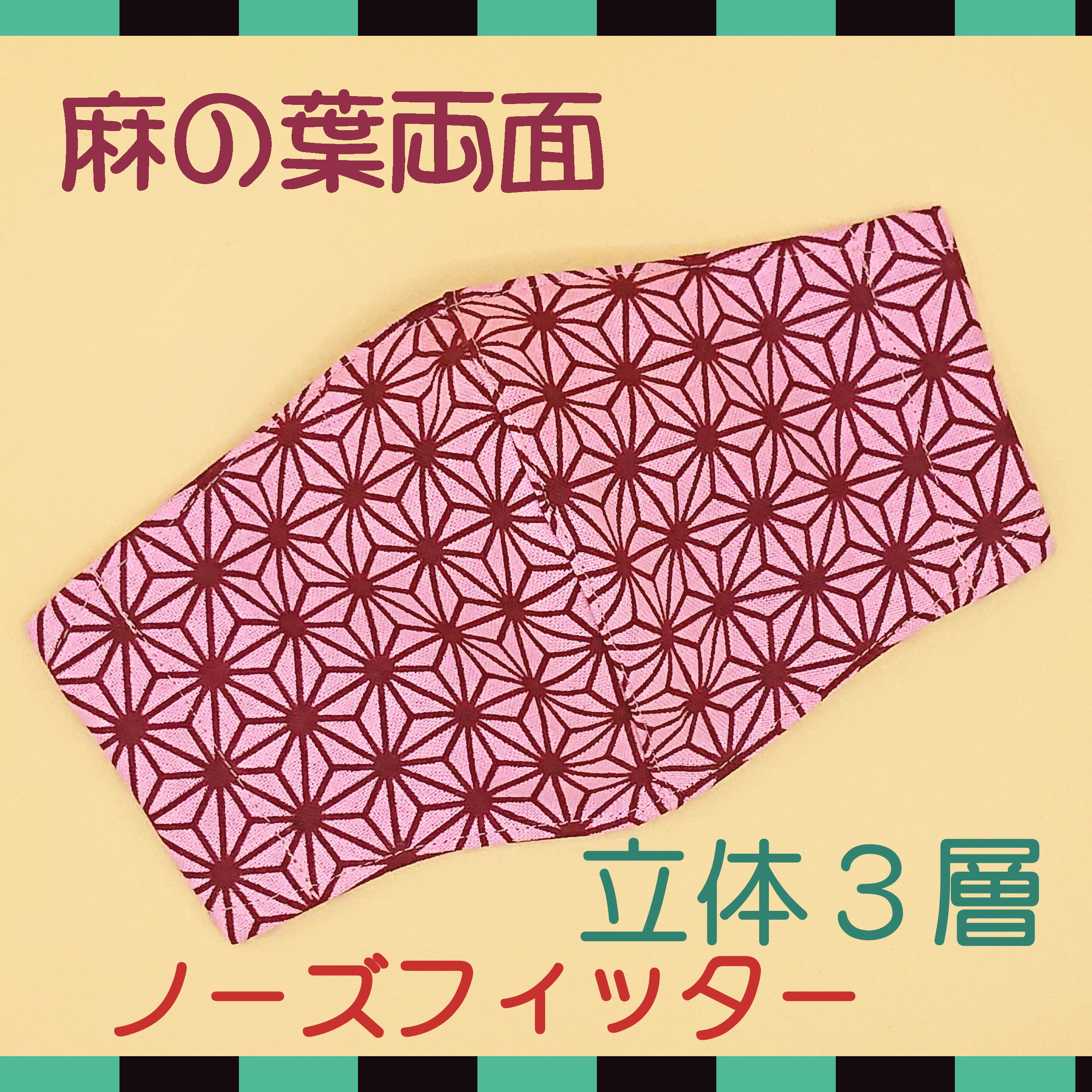 立体マスク ★麻の葉 ピンク★ 手ぬぐいマスク ●立体3層●ノーズフィッター●ポケット