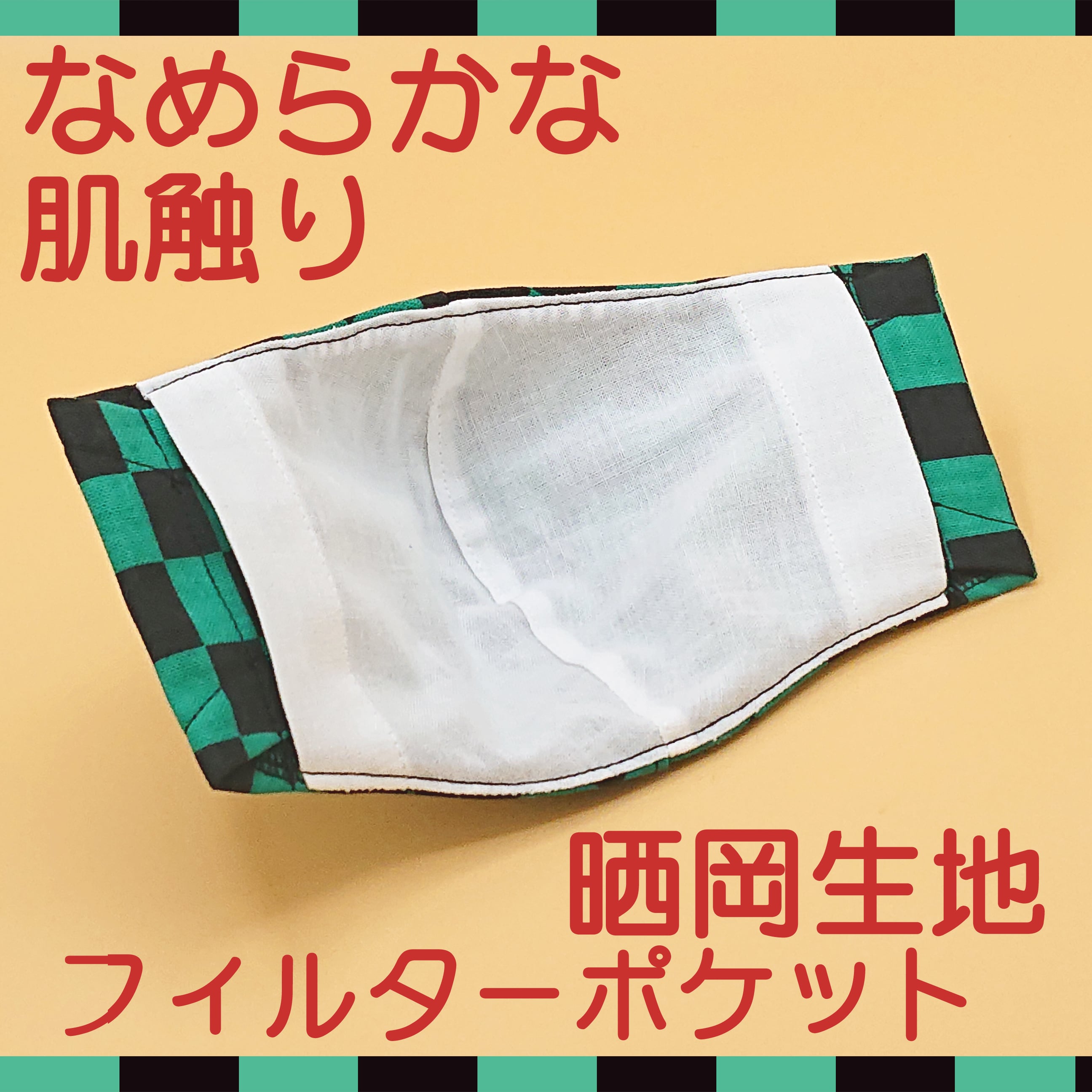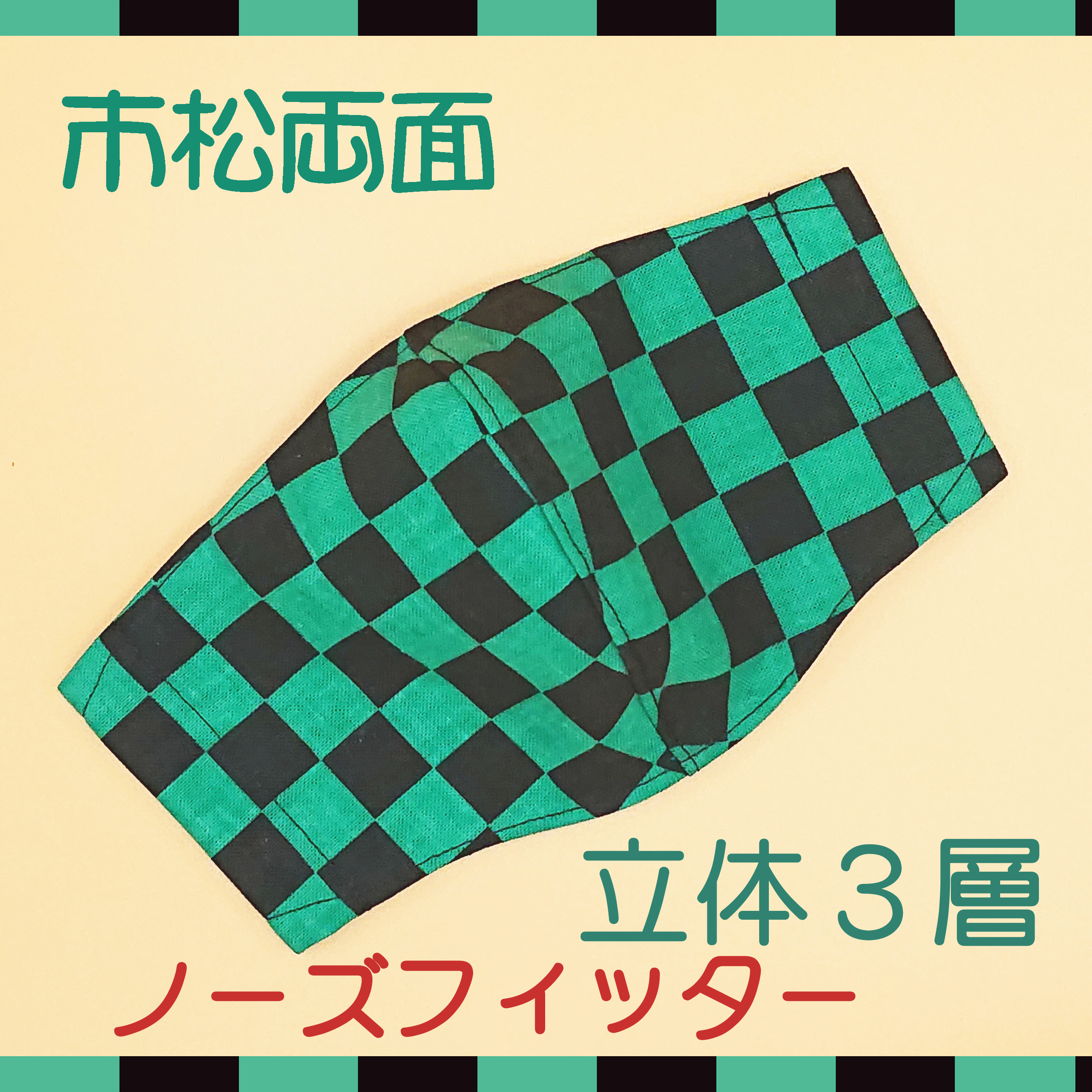立体マスク ★市松 グリーン★ 手ぬぐいマスク ●立体3層●ノーズフィッター●ポケット
