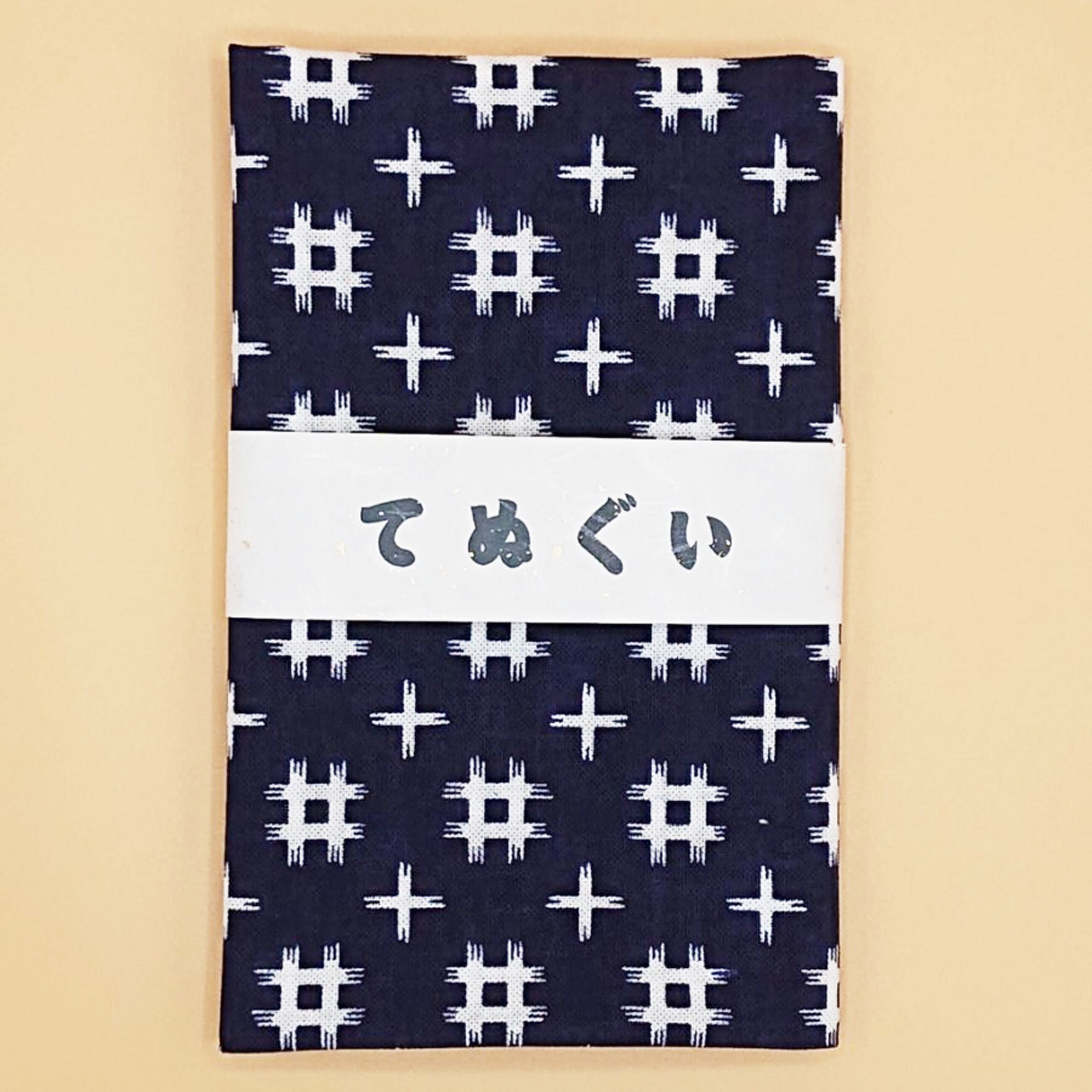 井の字を散りばめた絣文様の中でも一般的な伝統文様の一つ、井桁模様の手ぬぐいです。