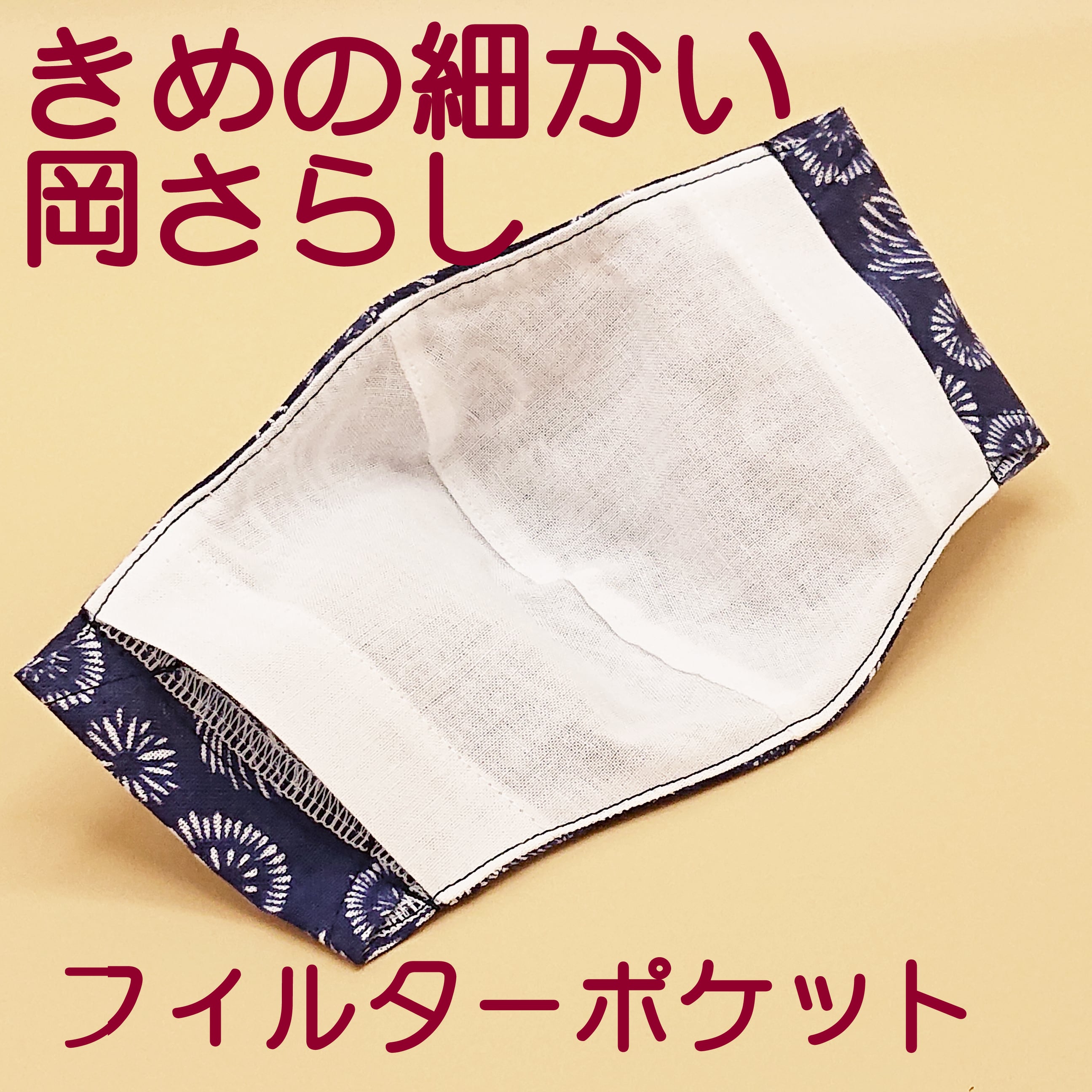 表地はてぬぐい、裏地は さらし。2層構造で、飛沫防止。