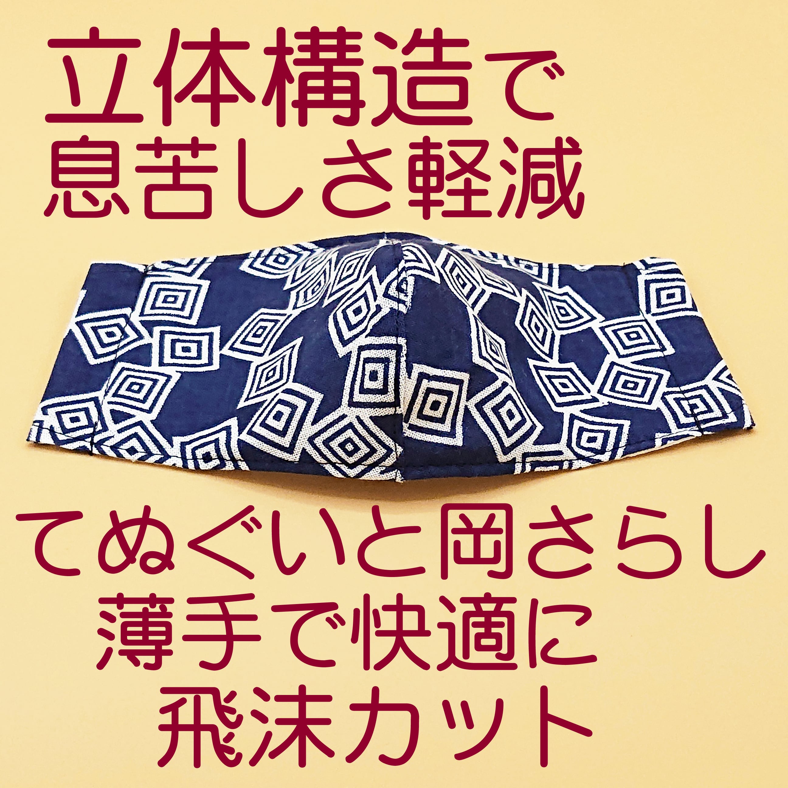 日本手ぬぐいを使って縫製したハンドメイドの 立体マスク です。