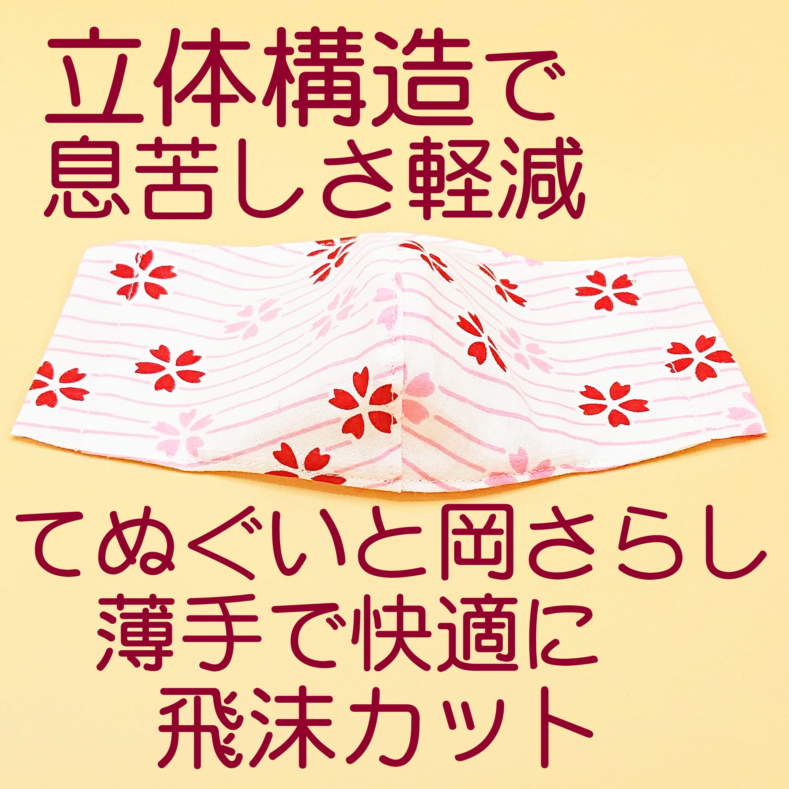 立体マスク ★水流二色桜 赤ピンク★ 手ぬぐいマスク●立体2層●ノーズフィッター●ポケット