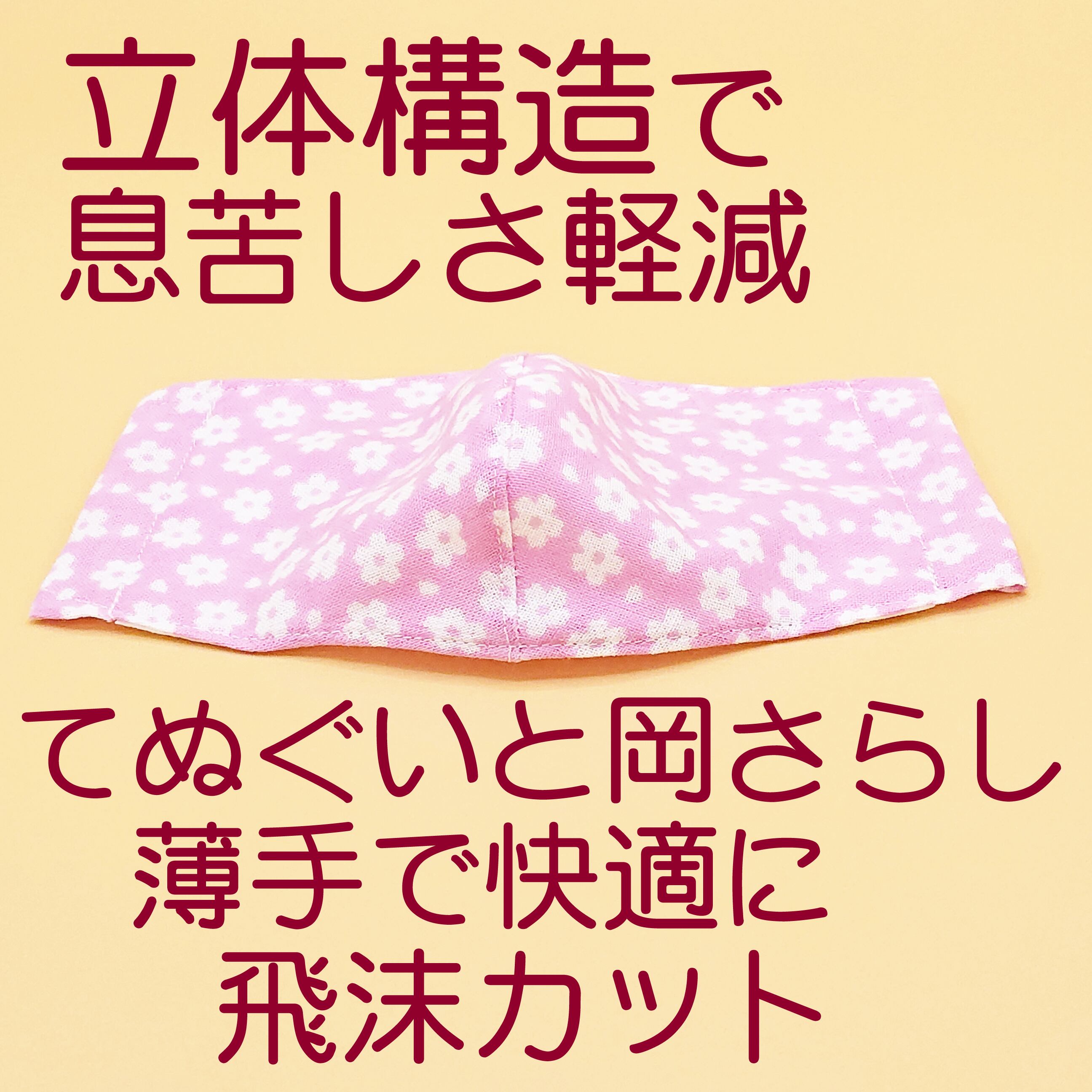 立体マスク ★薄桜★ 手ぬぐいマスク●立体2層●ノーズフィッター●ポケット