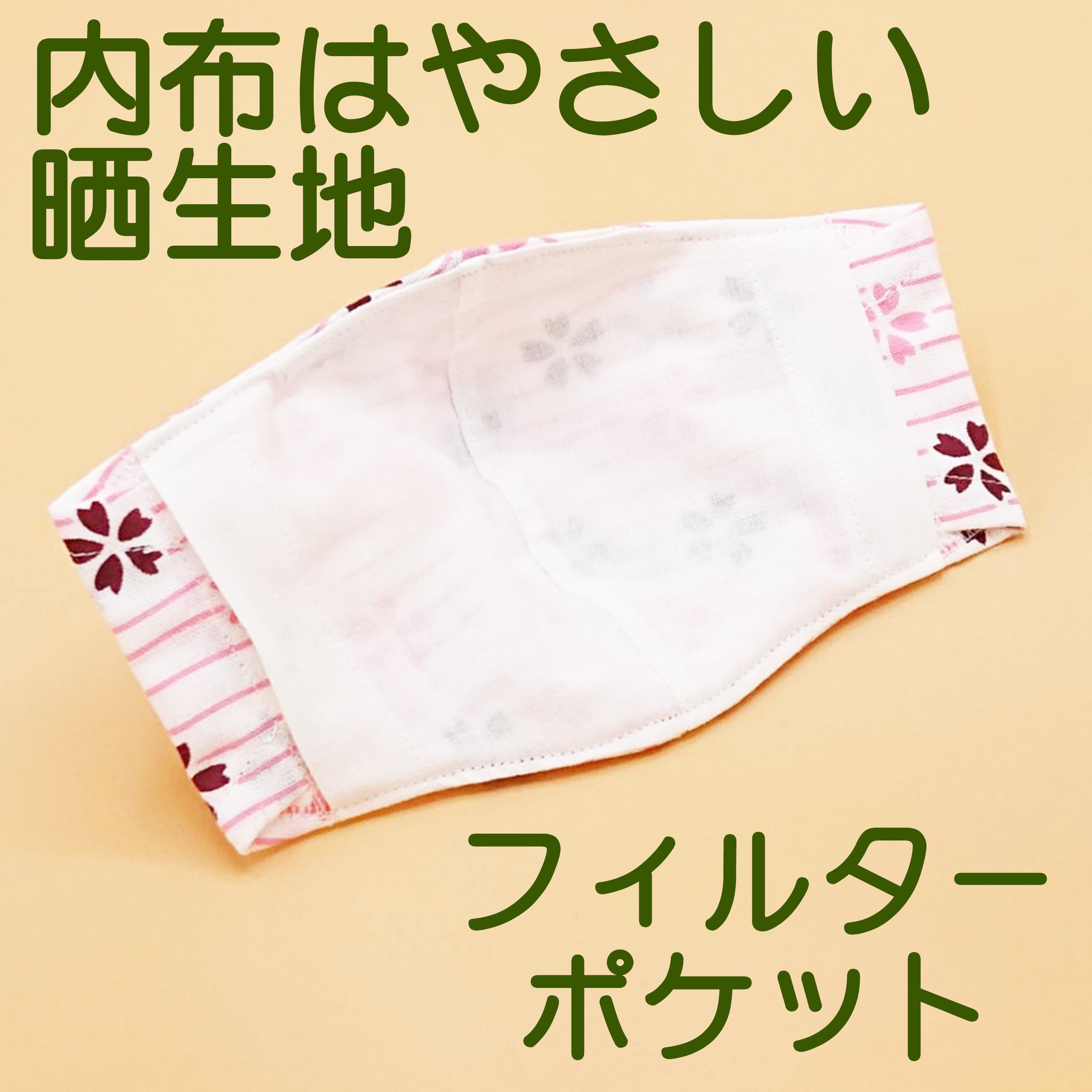 立体マスク ★水流二色桜 茶ピンク★ 手ぬぐいマスク●立体3層●ノーズフィッター●ポケット