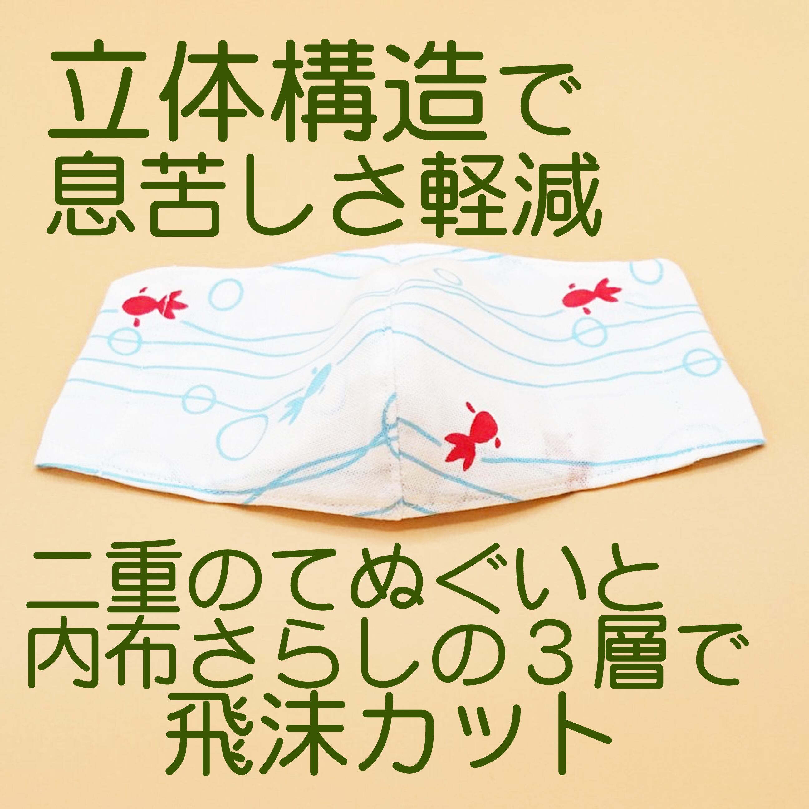 立体マスク ★水流二色金魚★ 手ぬぐいマスク●立体3層●ノーズフィッター●ポケット