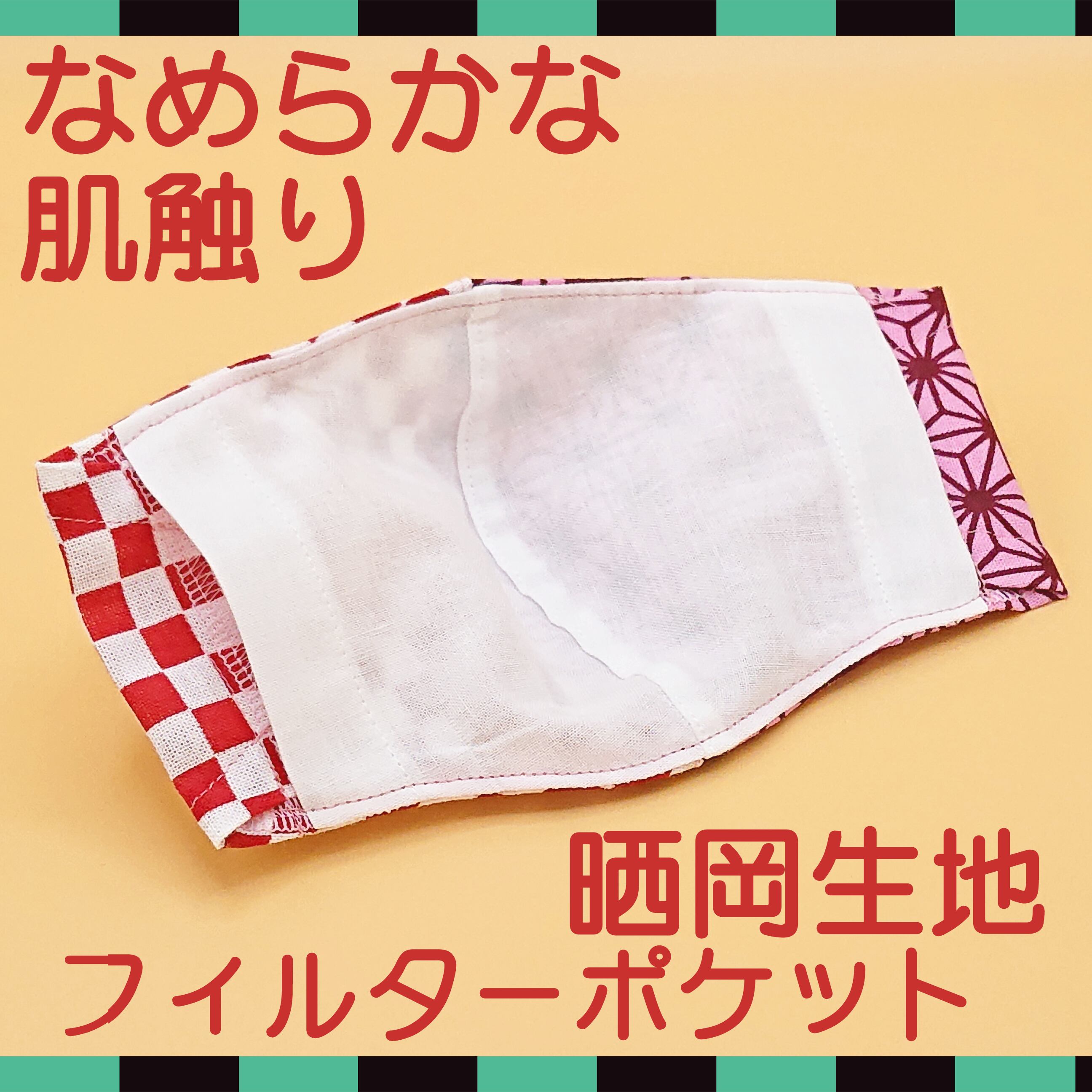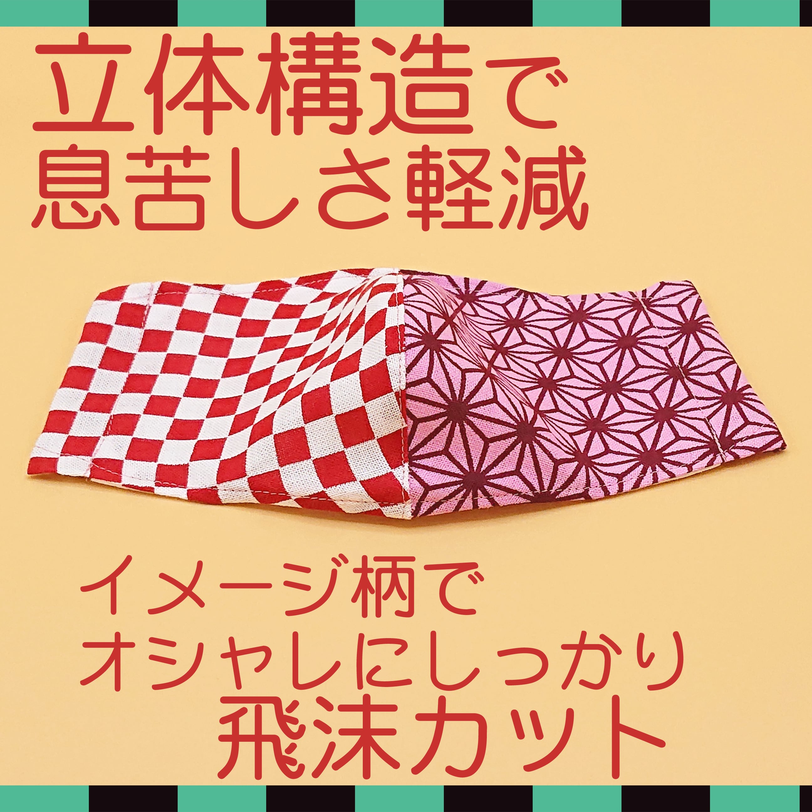 立体マスク ★市松 赤/麻の葉 ピンク★ 手ぬぐいマスク ●立体2層●ノーズフィッター●ポケット