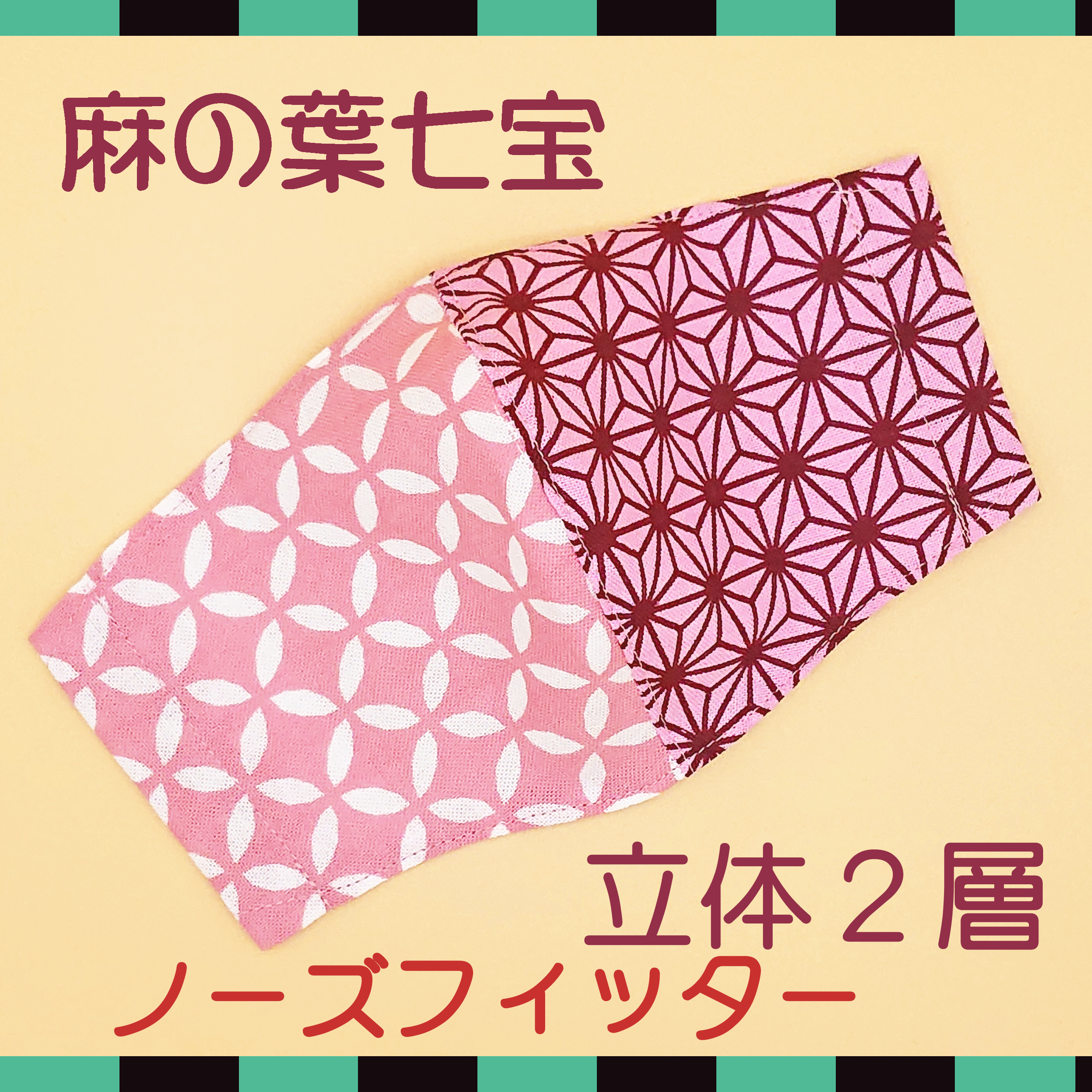 立体マスク ★麻の葉 ピンク/七宝しっぽう★ 手ぬぐいマスク ●立体2層●ノーズフィッター●ポケット