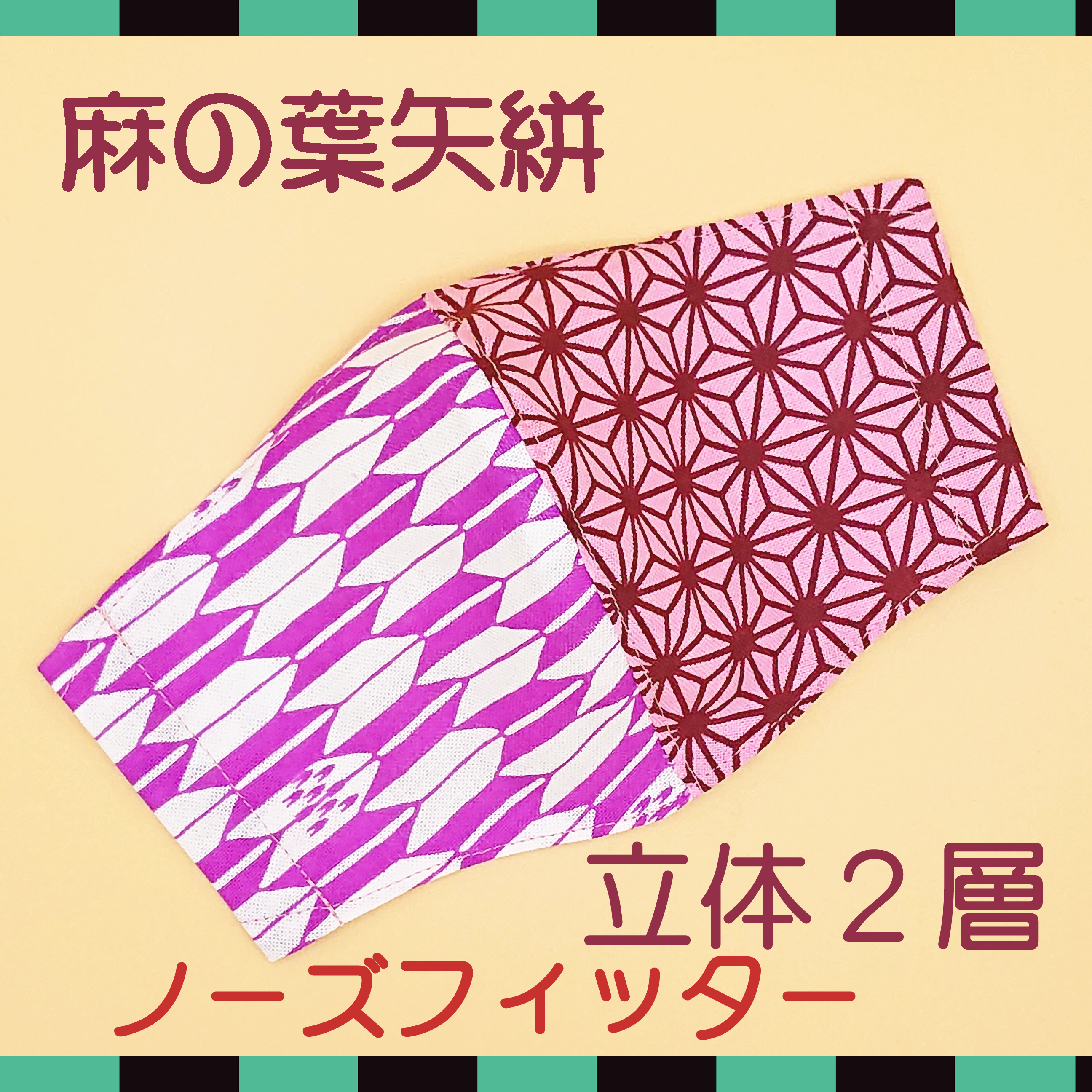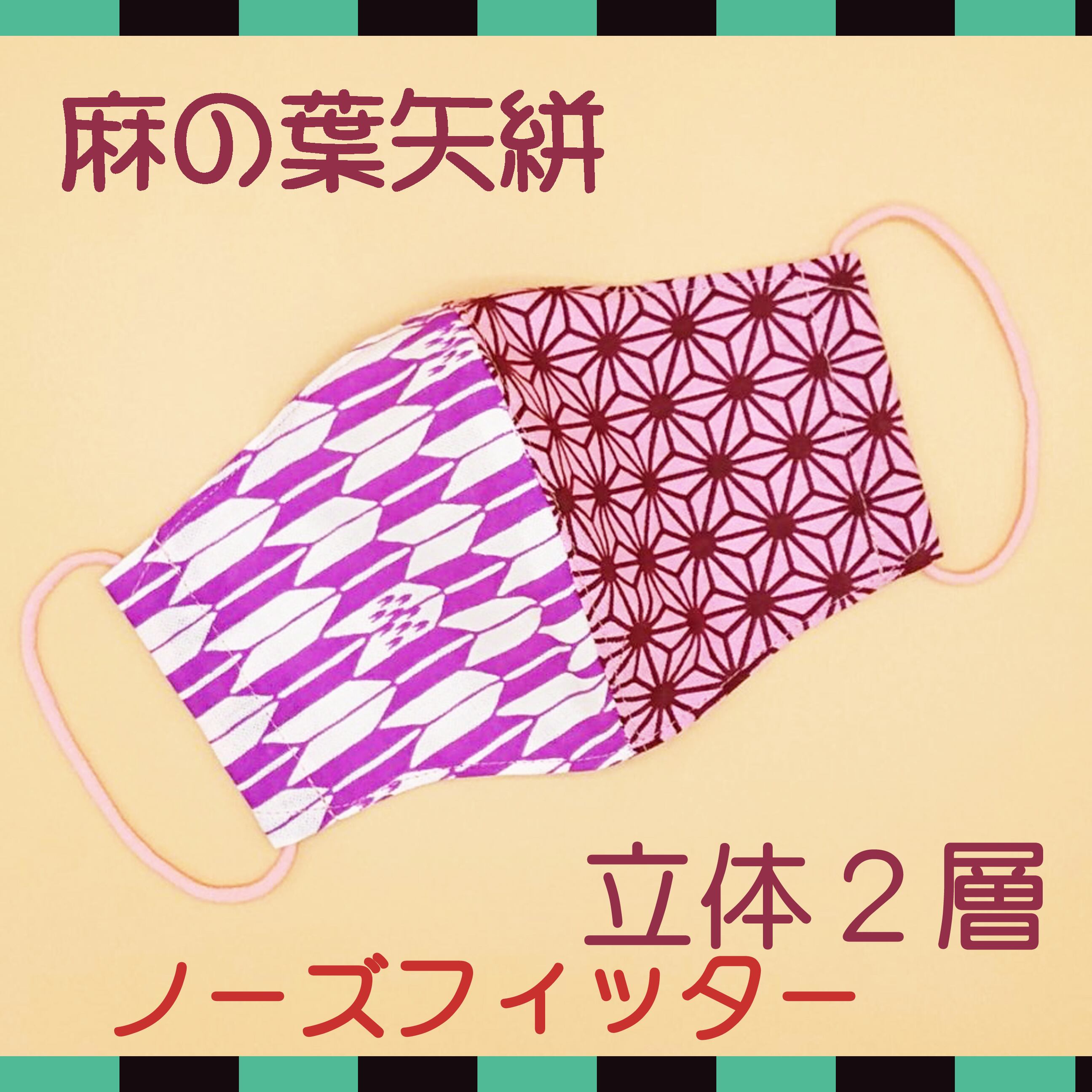 立体マスク ★麻の葉 ピンク/矢絣やがすり★ 手ぬぐいマスク ●立体2層●ノーズフィッター●ポケット