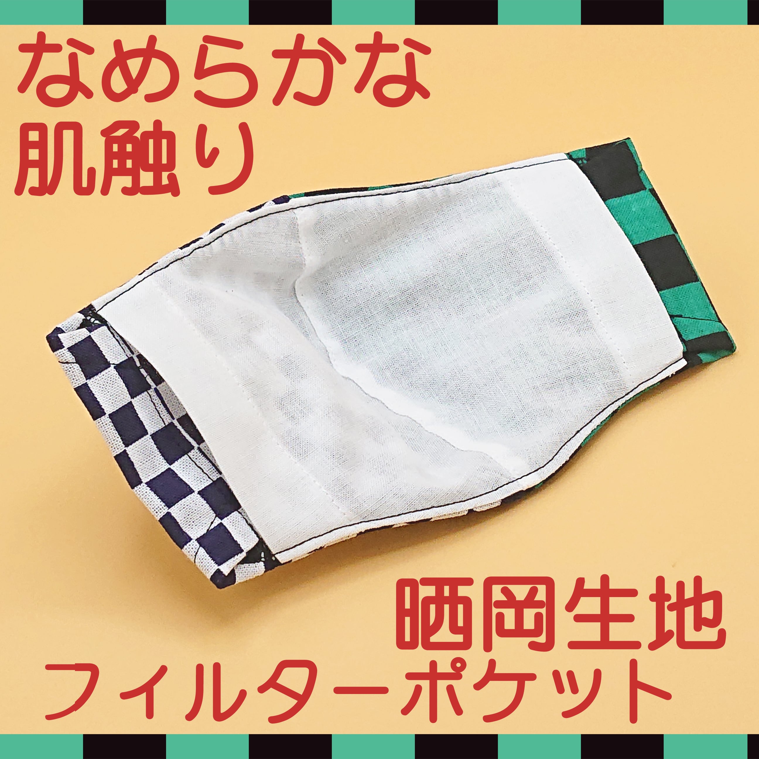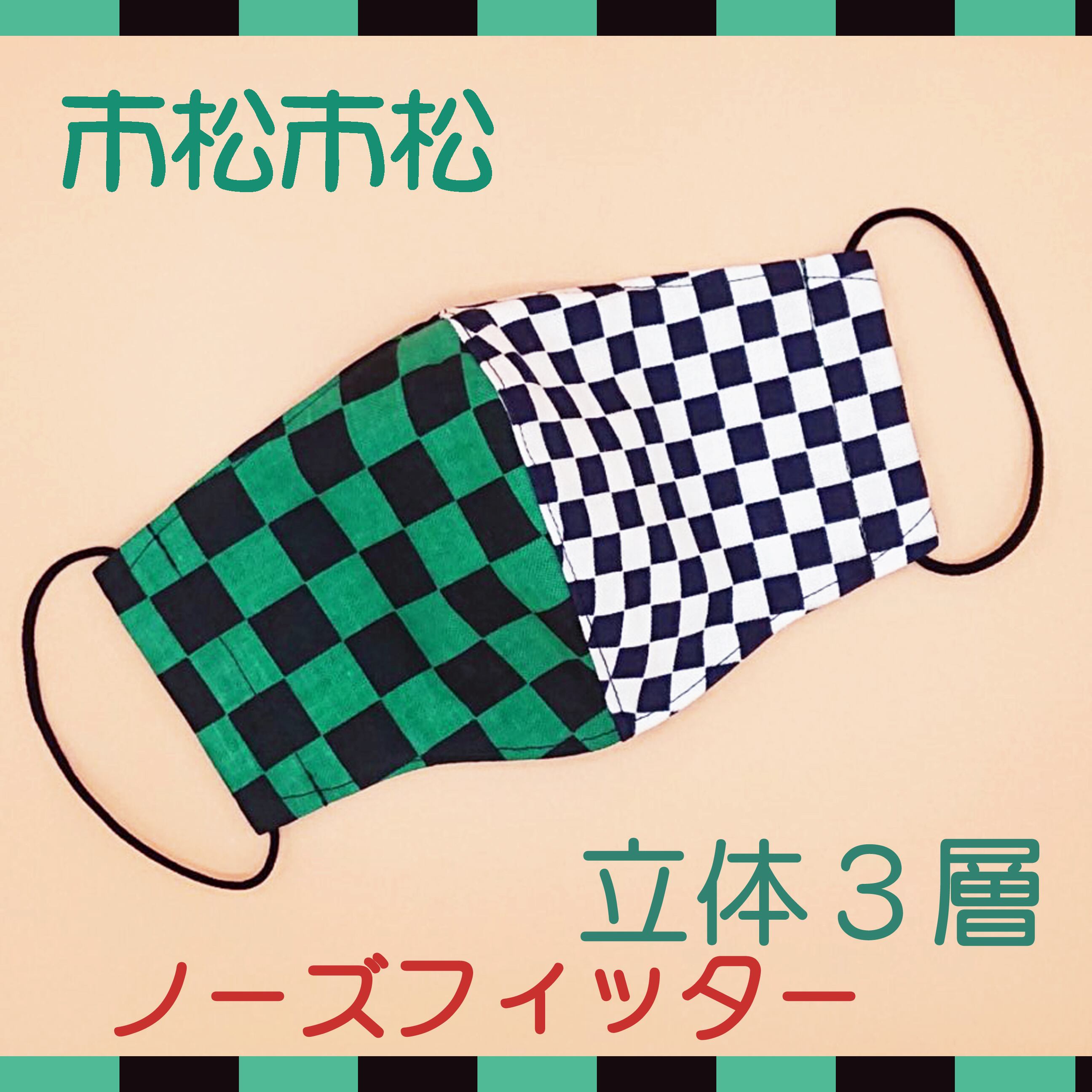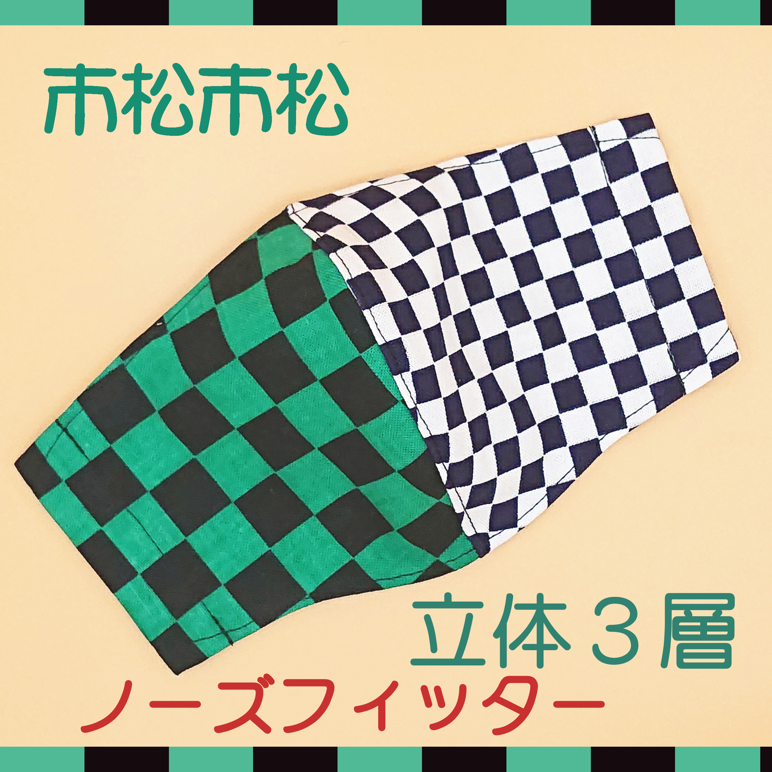 立体マスク ★市松 紺/市松 グリーン★ 手ぬぐいマスク ●立体3層●ノーズフィッター●ポケット
