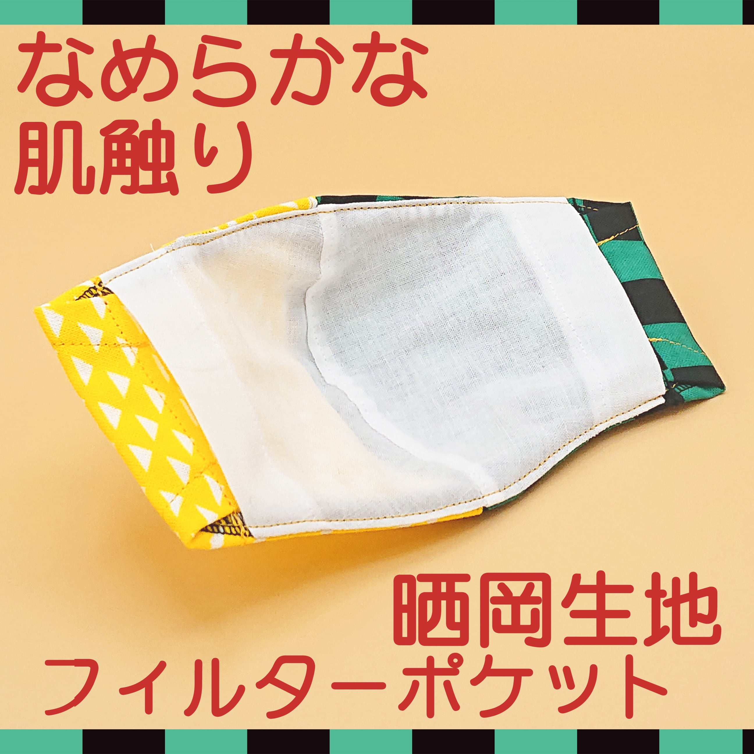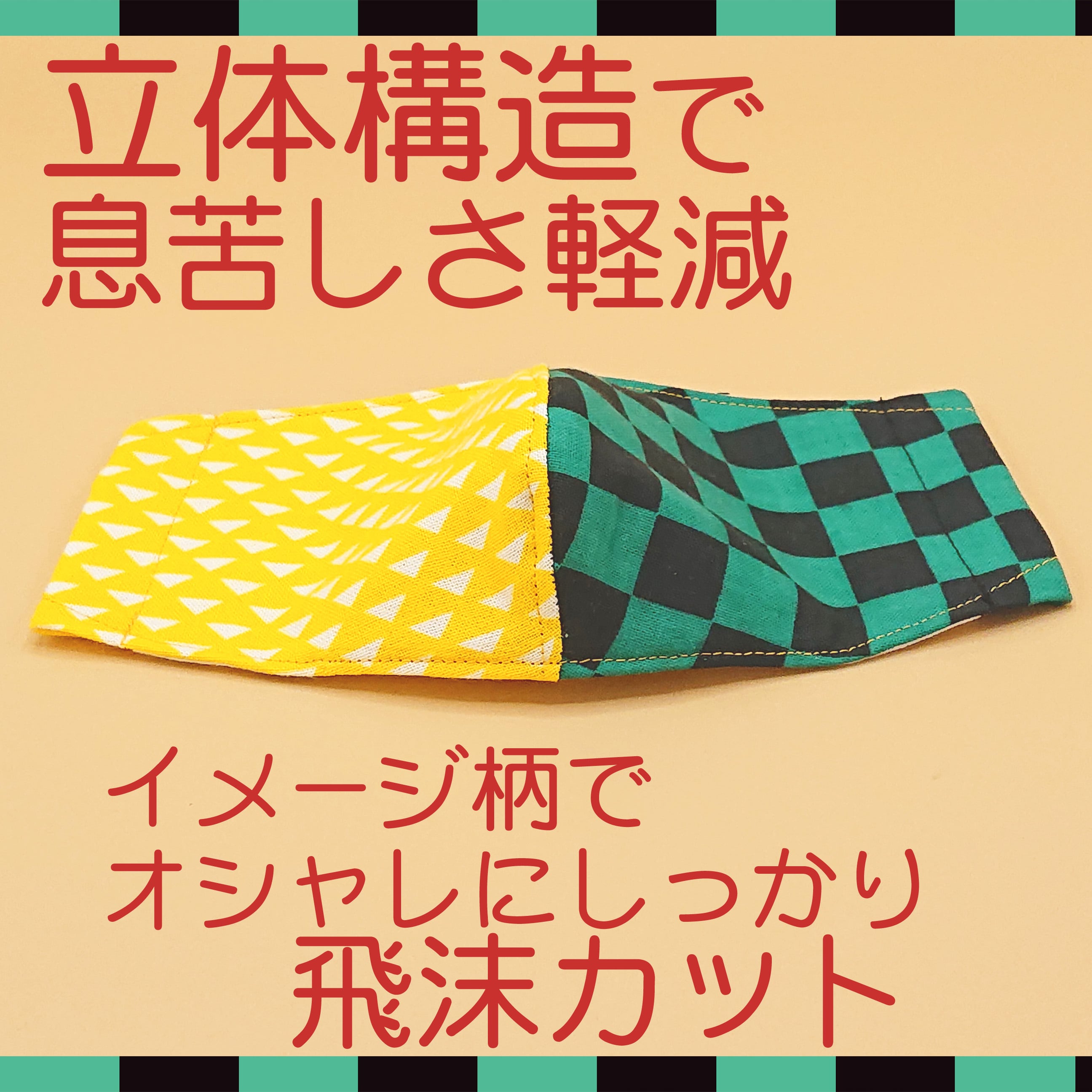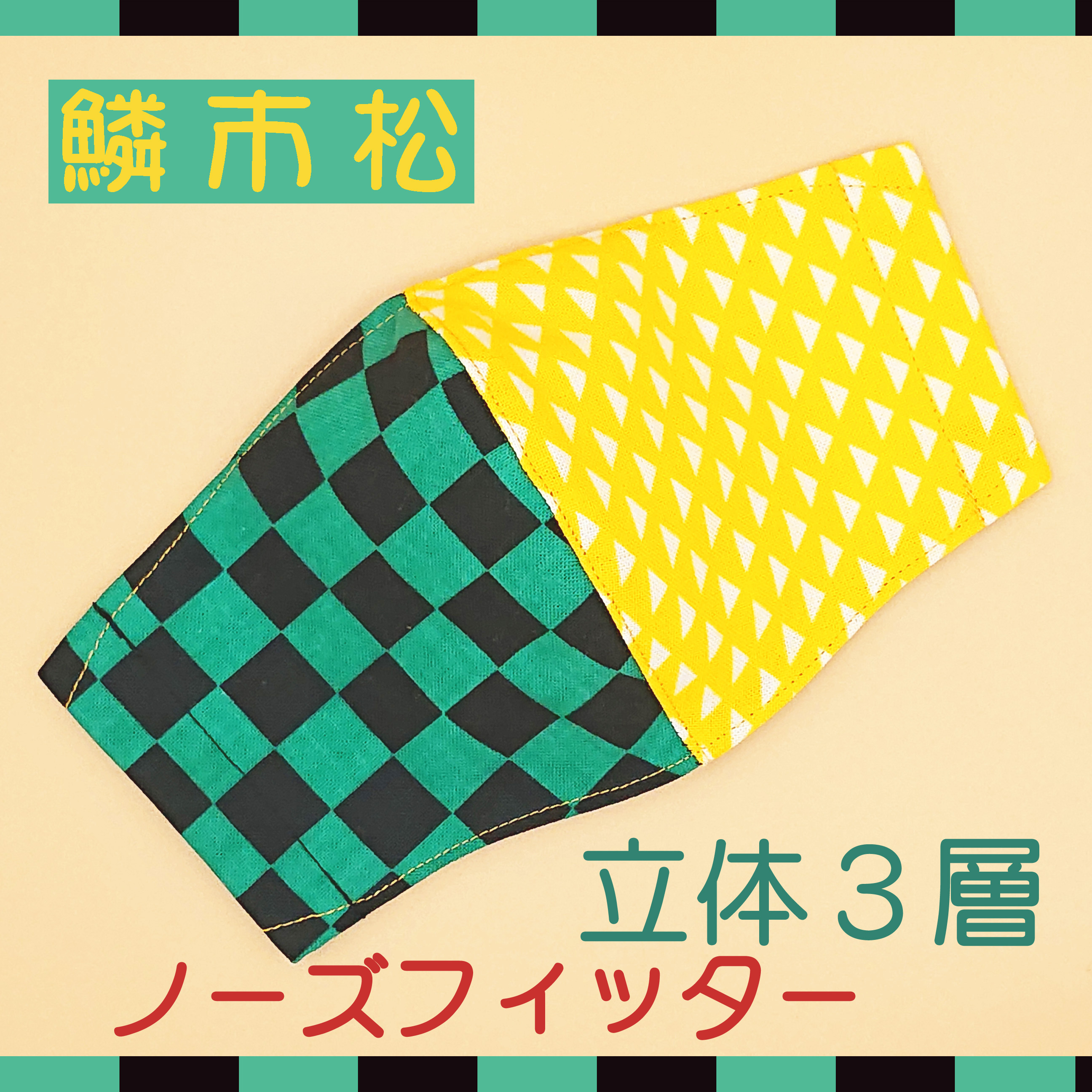 立体マスク ★鱗うろこ 黄/市松 グリーン★ 手ぬぐいマスク ●立体3層●ノーズフィッター●ポケット