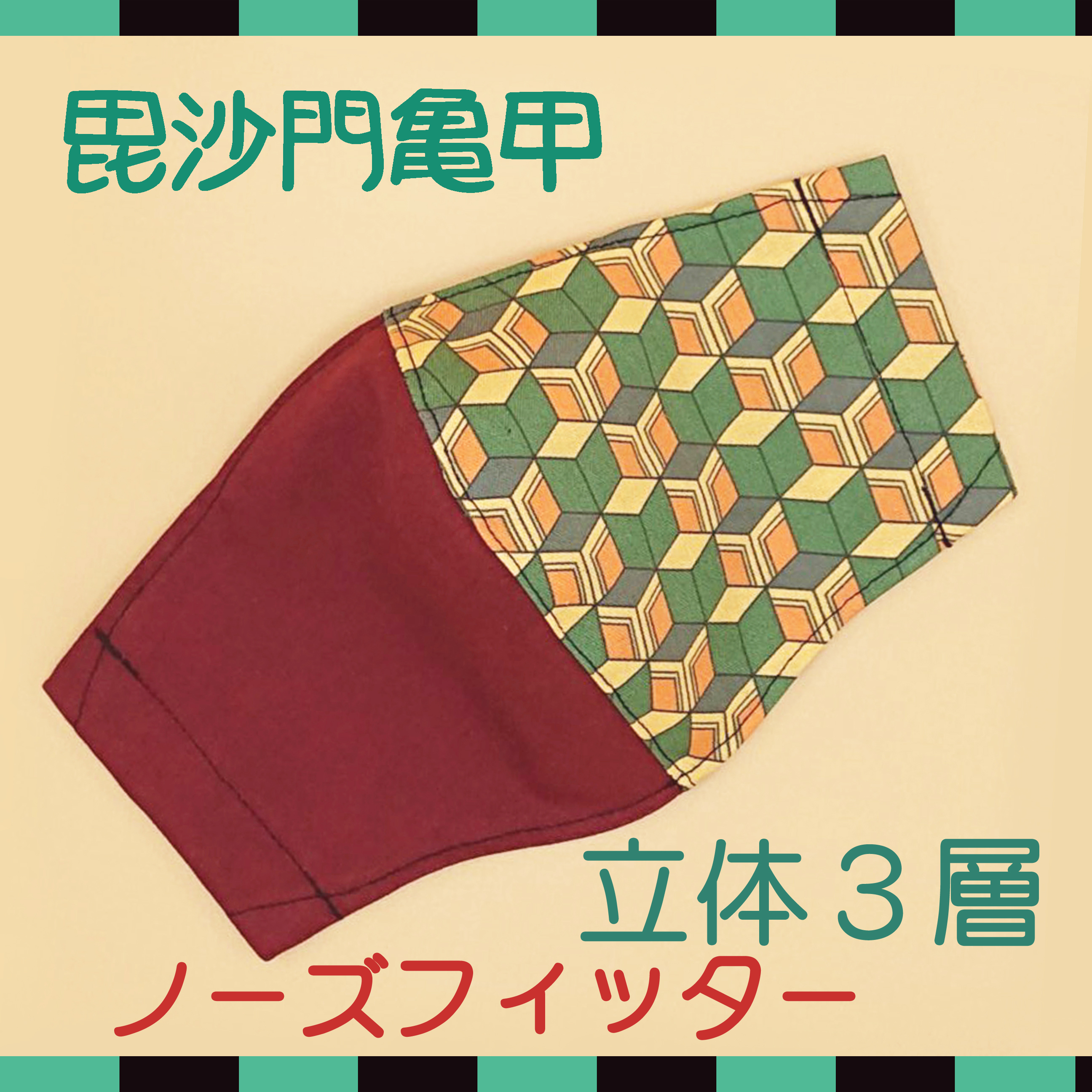 立体マスク ★毘沙門亀甲★ 手ぬぐいマスク ●立体3層●ノーズフィッター●ポケット