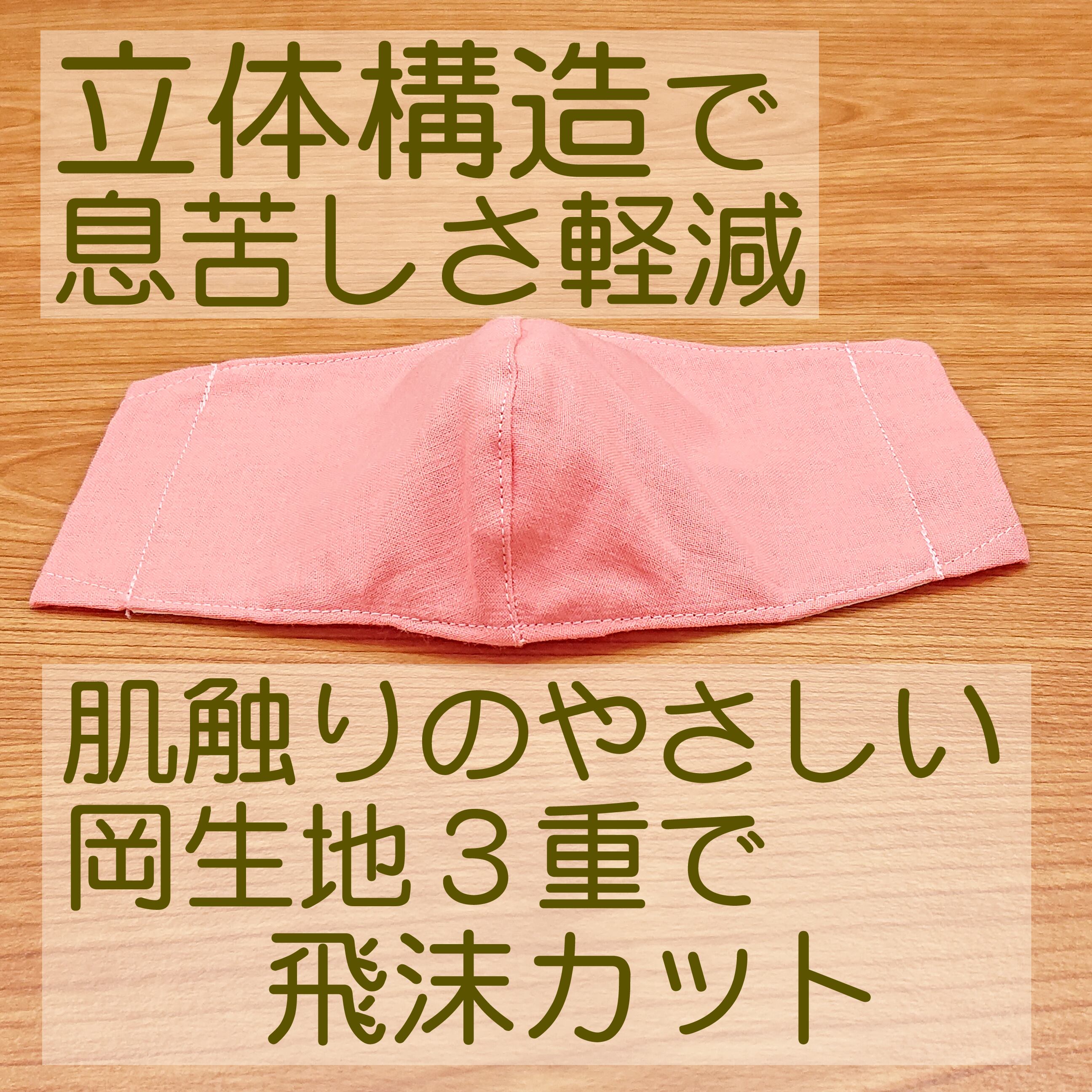 立体マスク ★無地 桃色★ 手ぬぐいマスク●立体3層●ノーズフィッター●ポケット